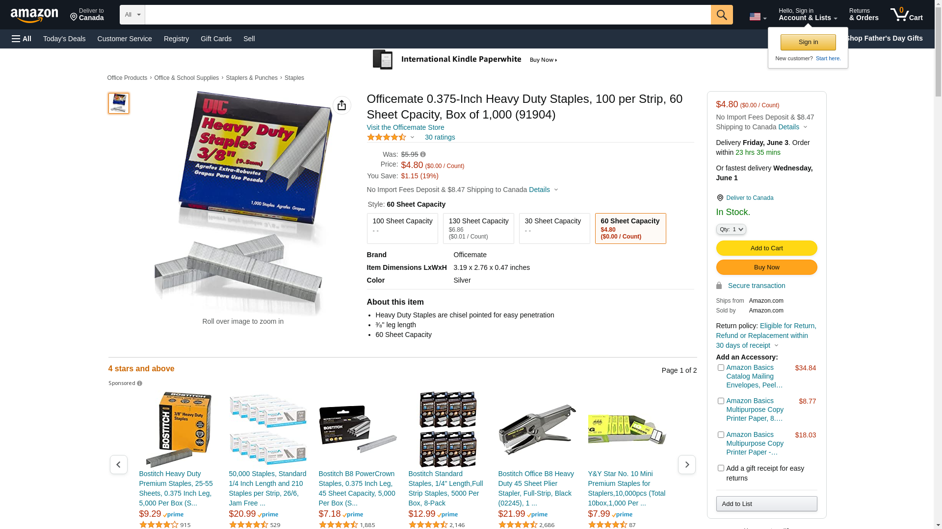 Officemate 0.375-Inch Heavy Duty Staples, 100 per strip, 60 Sheet Cpacity, Box of 1, 000 (91904). Heavy Duty Staples ...