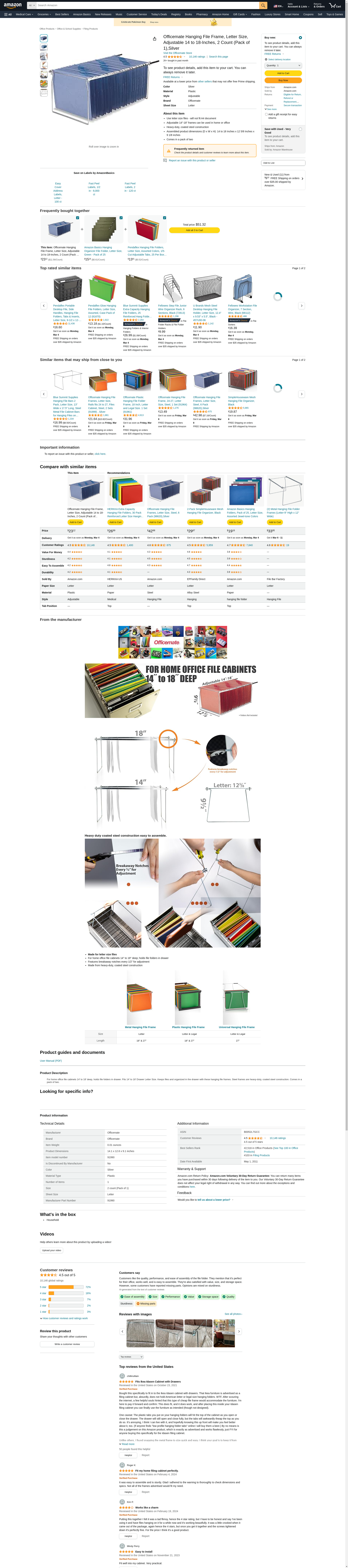 Officemate Hanging File Frame, Letter Size, Adjustable 14 to 18-Inches, 2 Pack (91990). Use letter size files. Adjust...