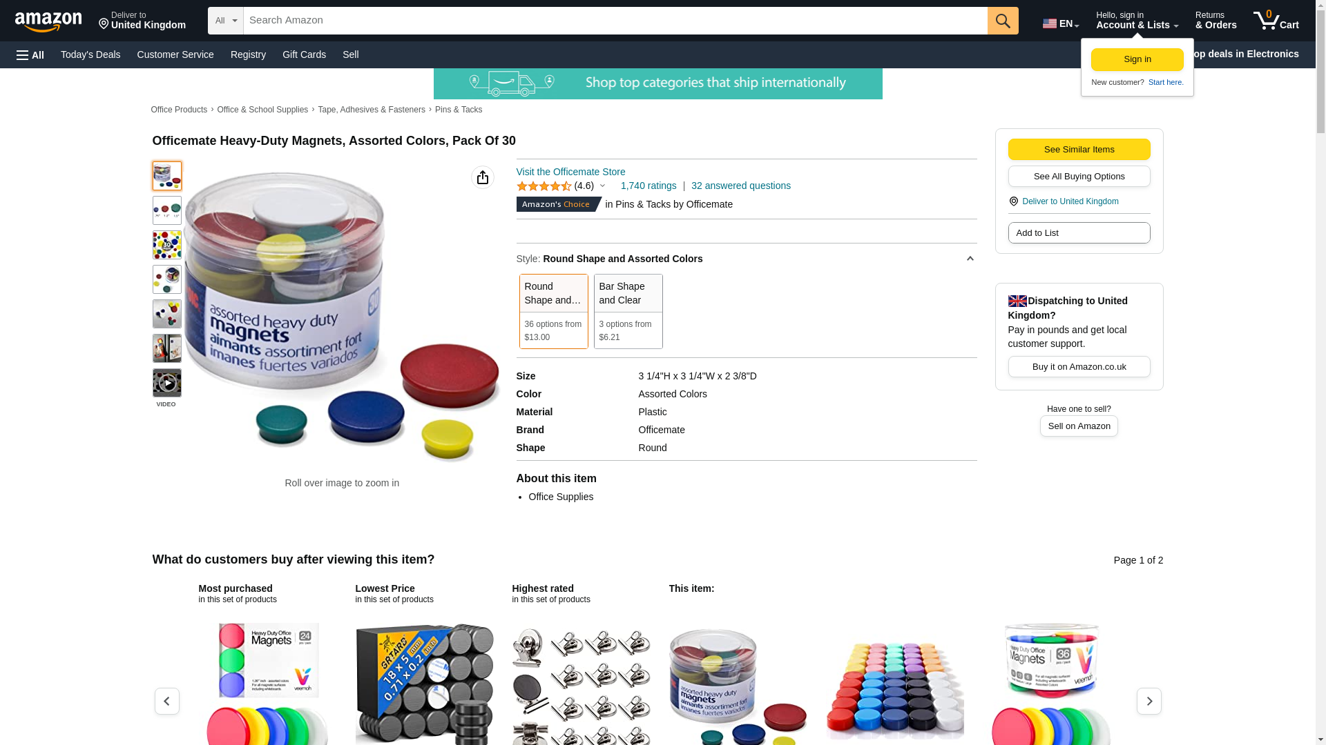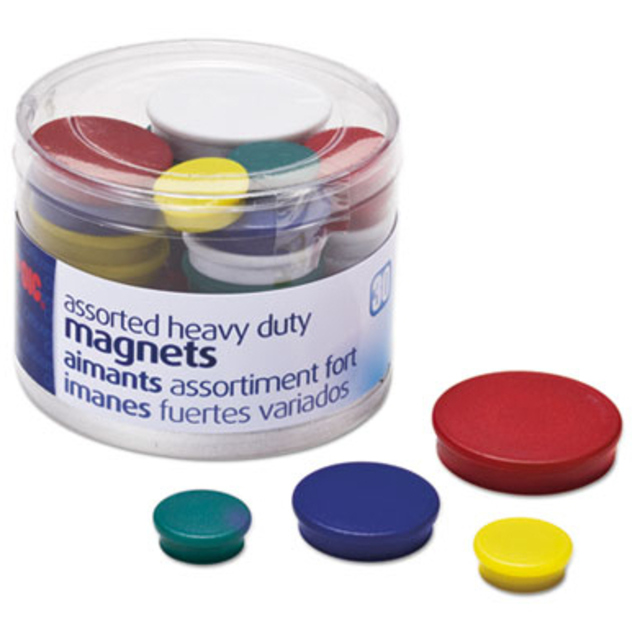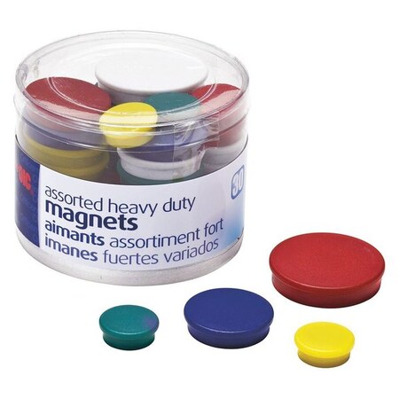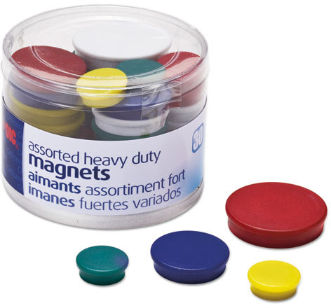 Officemate 92501 Assorted Heavy-Duty Magnets, Circles, Assorted Sizes & Colors, 30/Tub