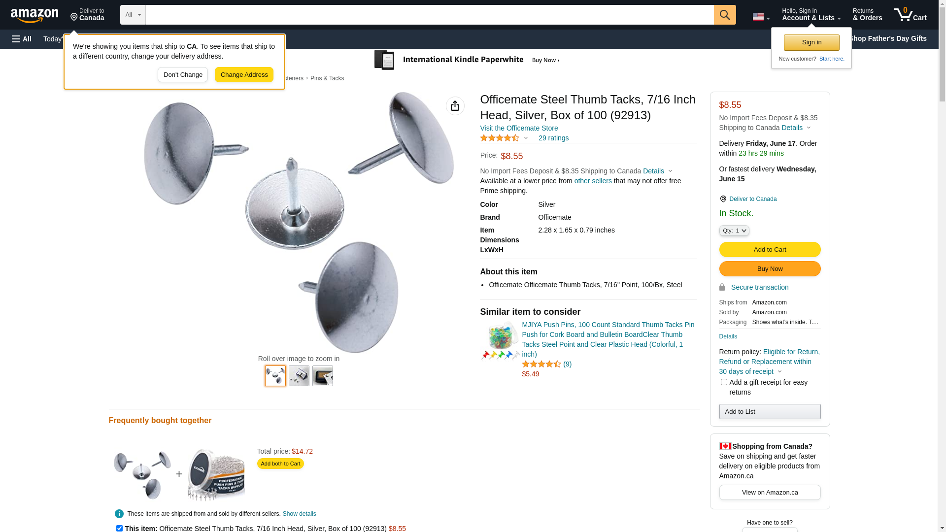 OfficemateOIC Steel Thumb Tacks, 7/16 Inch Head, Silver, Box of 100 (92913). Large 7/16" heads and 3/8" points. Perfe...