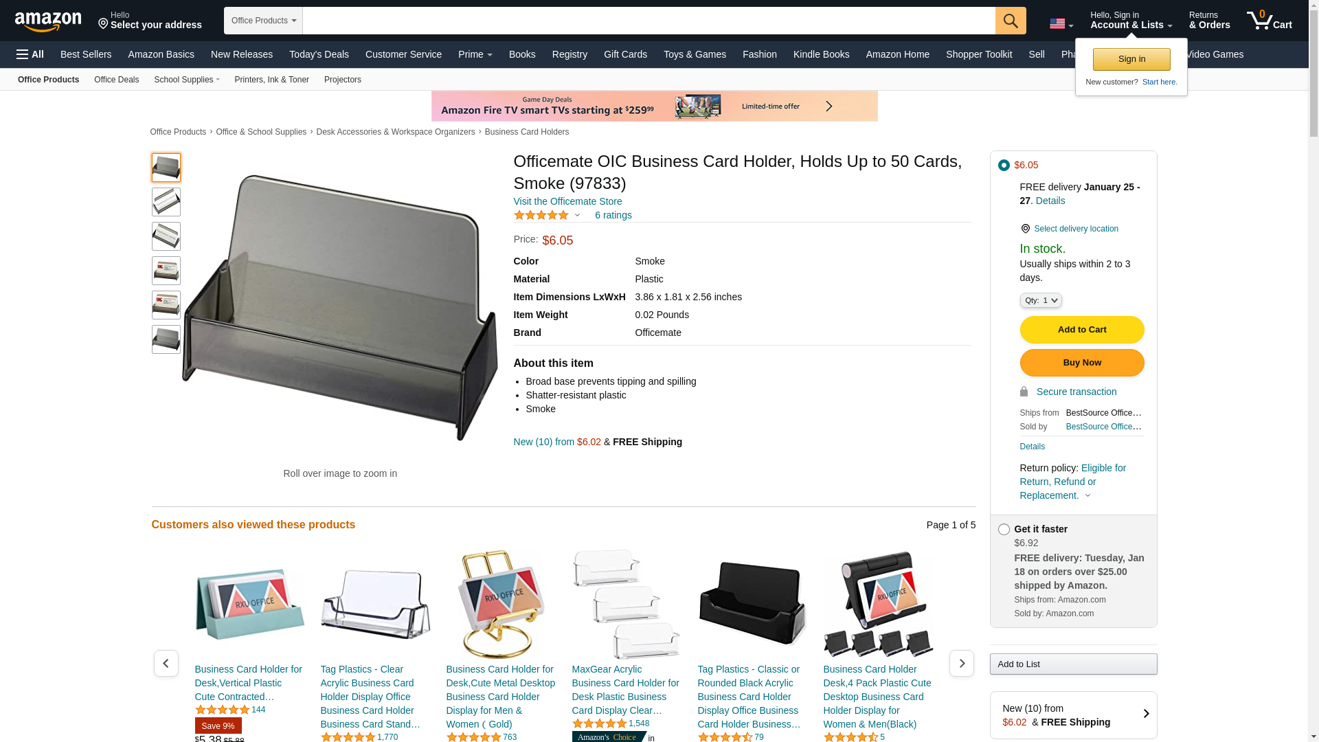 Officemate OIC Business Card Holder, Holds Up to 50 Cards, Smoke (97833). Holds business cards for easy access. Appro...