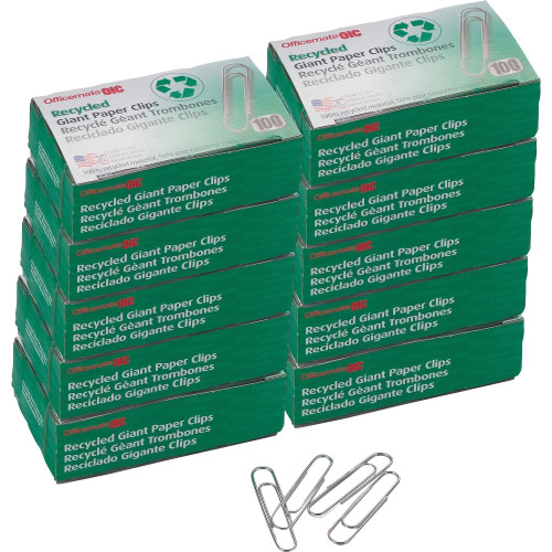 Officemate Recyled Giant Paper Clips, Pack of 10 Boxes of 100 Clips Each (99964). Giant Paper Clips. 100% recycled ma...