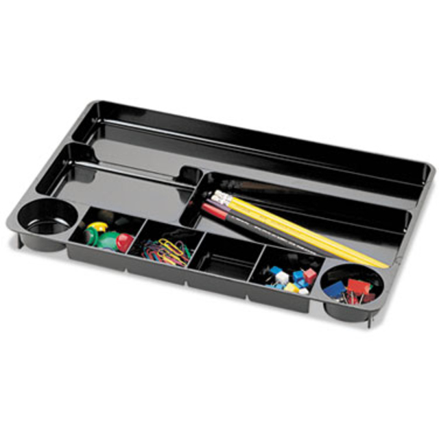 OIC26032 Features: -Drawer organizer. -Material: Plastic. -Compartments: 9. -Adjustable: No. -Made in the USA. -Color: Black. Product Type: -Divider. Color: -Black. Country of Manufacture: -United States. Dimensions: Overall Height - Top to Bottom: -1.125". Overall Width - Side to Side: -14". Overall Depth - Front to Back: -9". Overall Product Weight: -0.7 lbs.