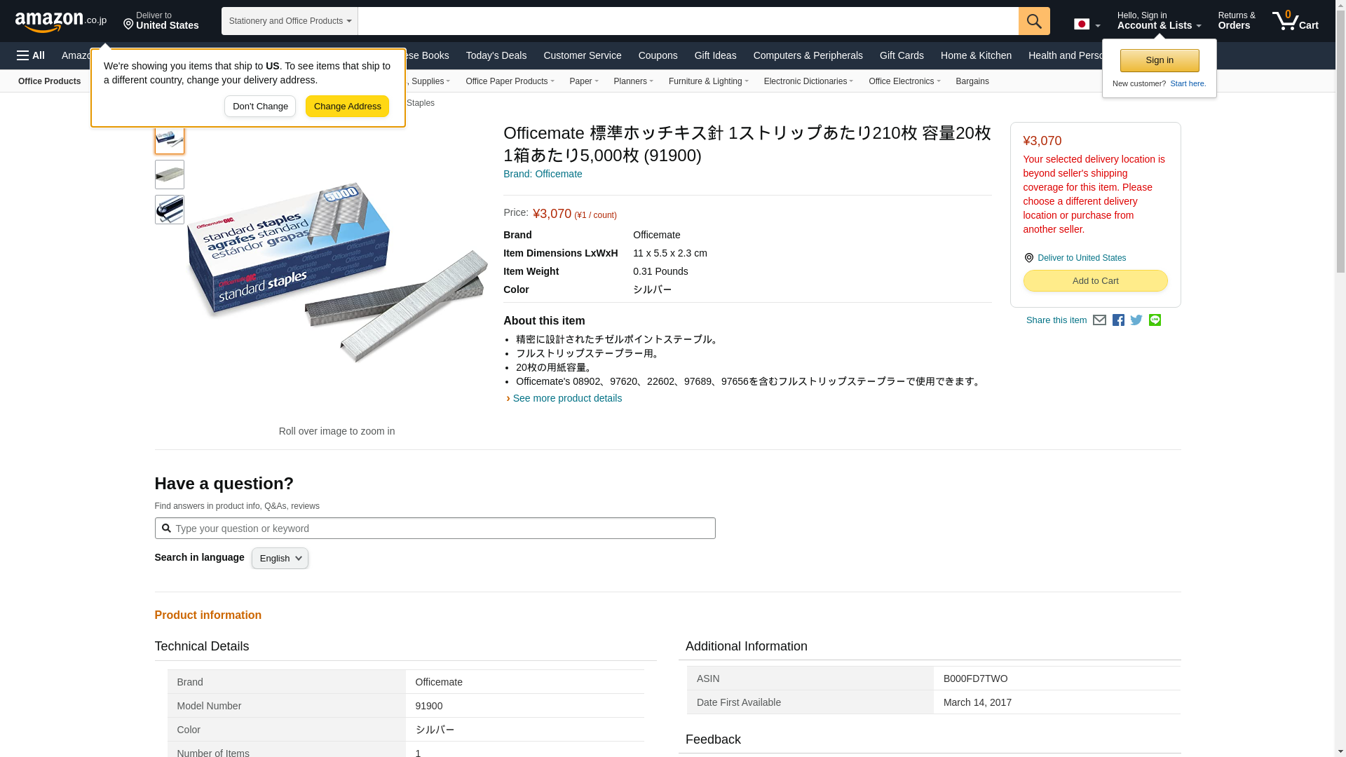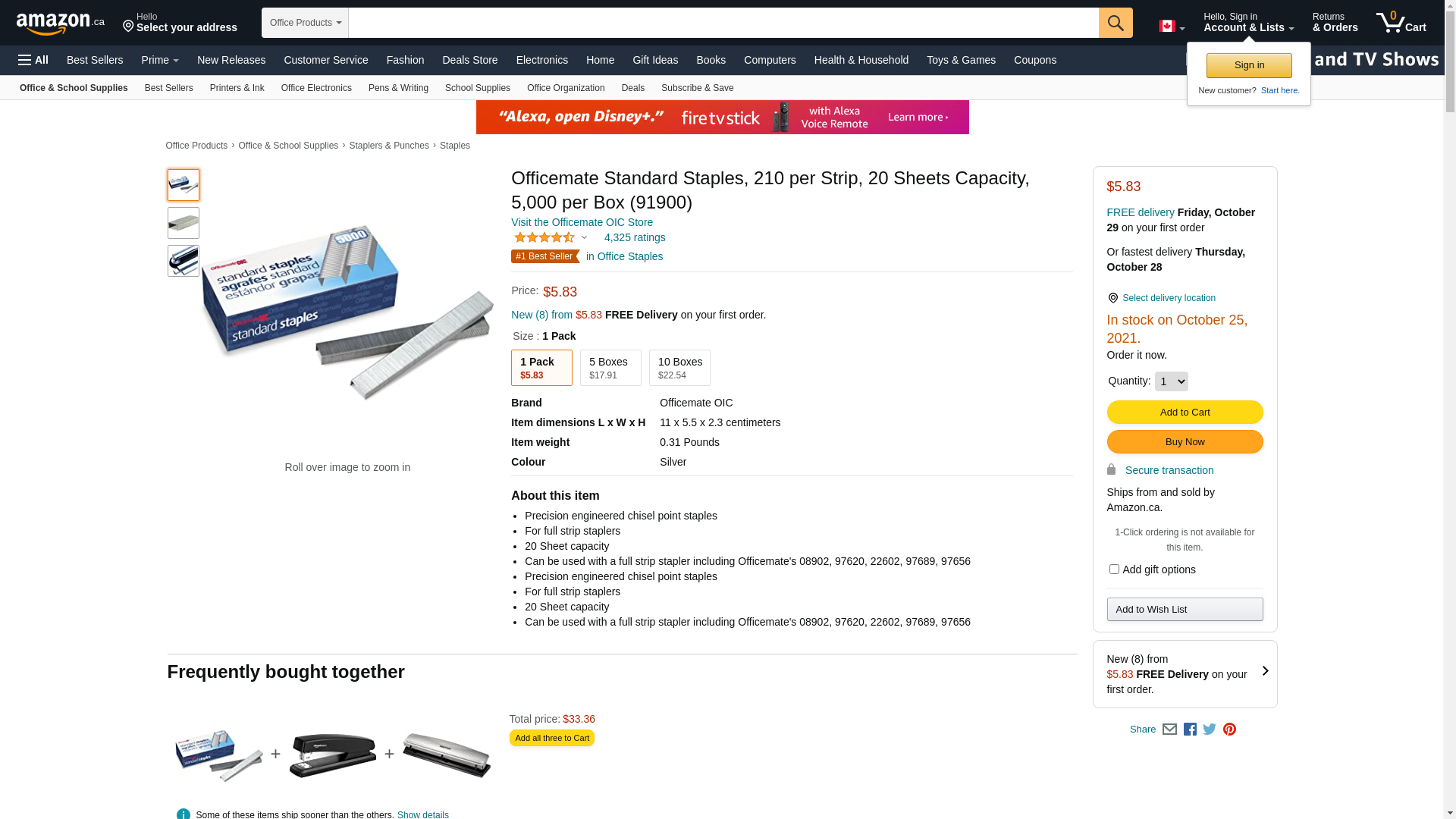 Officemate International Corp. 91900 Staples, Standard Chisel Point, 5000 Staples/Box