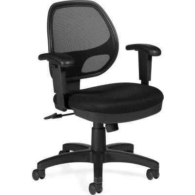 Offices To Go™ Mesh Back Task Chair with Arms - Fabric - Black