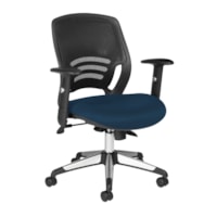 Offices to Go Pacer Mid-Back Synchro-Tilter Chair, Navy Quilt Fabric Seat with Black Mesh Back | Grand & Toy