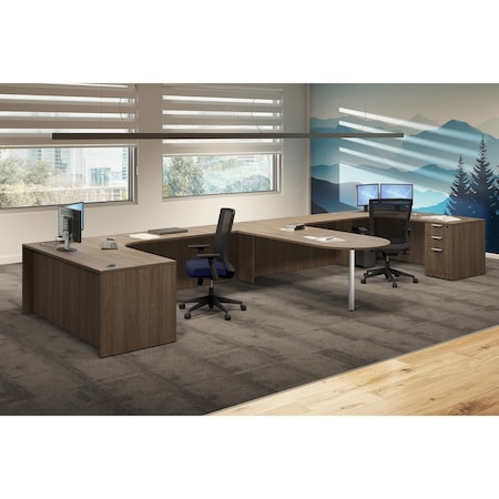 OfficeSource Desk & Credenza Set for Office or Home, Modern Walnut Laminate, Straight Front Desks, Bullet Table Top, 3 Drawer Deluxe Full Pedestal