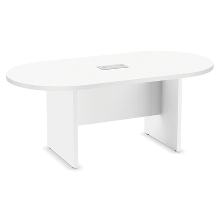 OfficeSource 71"Long Racetrack Conference Table with Matching Slab Base, High Quality White Wood Finish, Durable and Structurally Sound