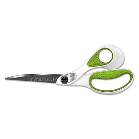 <b>Features</b><ul><li>Patent-pending CarboTitanium blade-bonding technology, one of the hardest titanium-surface treatments available.</li><li>Easily cut through multiple layers of fabric, cardboard, canvas, vinyl magnets and more.</li><li>Blade surface will not chip, flake or peel, giving these scissors an incredibly long life.</li><li>Global Product Type - Scissors-Scissors</li><li>Cut Length - 4 1/2 in.</li><li>Scissor Length - 9 in.</li><li>Tip Type - Rounded</li><li>Handle Type - Bent</li><li>Scissor Type - Scissors</li><li>Material - Carbo Titanium</li><li>Handle Color - White/Green</li><li>Style - Home/Office</li><li>Left/Right Hand Use - For right hand use</li></ul>