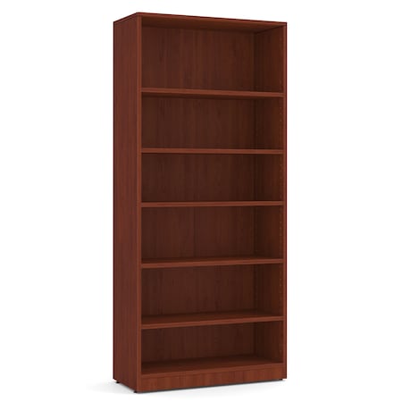 OfficeSource 6-Tier Open Shelf Wooden Bookcase for The Office, Adjustable Shelves, Cherry Finish, Reliable & Durable Premium Wood