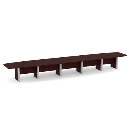OfficeSource 22' Long Boat-Shaped Conference Table with Black Trim Elliptical Base, Mahogany Wood Finish, Durable and Structurally Sound