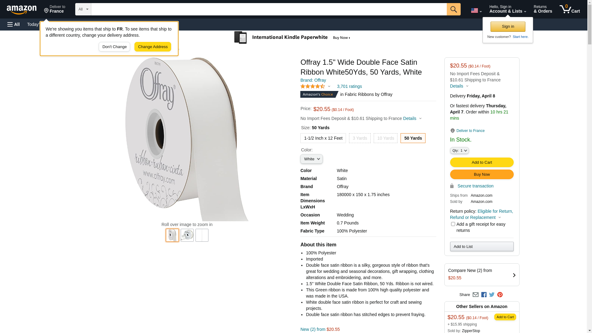 - 1.5'' White Double Face Satin Ribbon, 50 Yds. Ribbon is not wired.