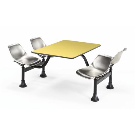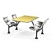 <b>Features</b> <ul> <li>This versatile cluster table works great both indoors and outdoors, from playgrounds to lunchrooms!</li> <li>The table includes 4 attached seats with an auto-return swivel feature for ease of entry and exit</li> <li>The durable stainless steel 24 x 48 in. tabletop surface resists mars and scuffs</li> <li>The table and seats are both waterproof and fireproof</li> <li>Steel seats with powder-coated paint finish</li> <li>Black powder-coated paint of frame</li> <li>Adjustable foot glides</li> <li>Permanent installation optional</li> <li>Color: Yellow</li> <li>Seat Size: 17 W x 14 D in.</li> <li>Back Size: 16 W x 11.5 H in.</li> <li>Seat Height: 18 in.</li> <li>Dimension: 64.25 x 47.5 x 29.5 in.</li> </ul>- SKU: OFM06517