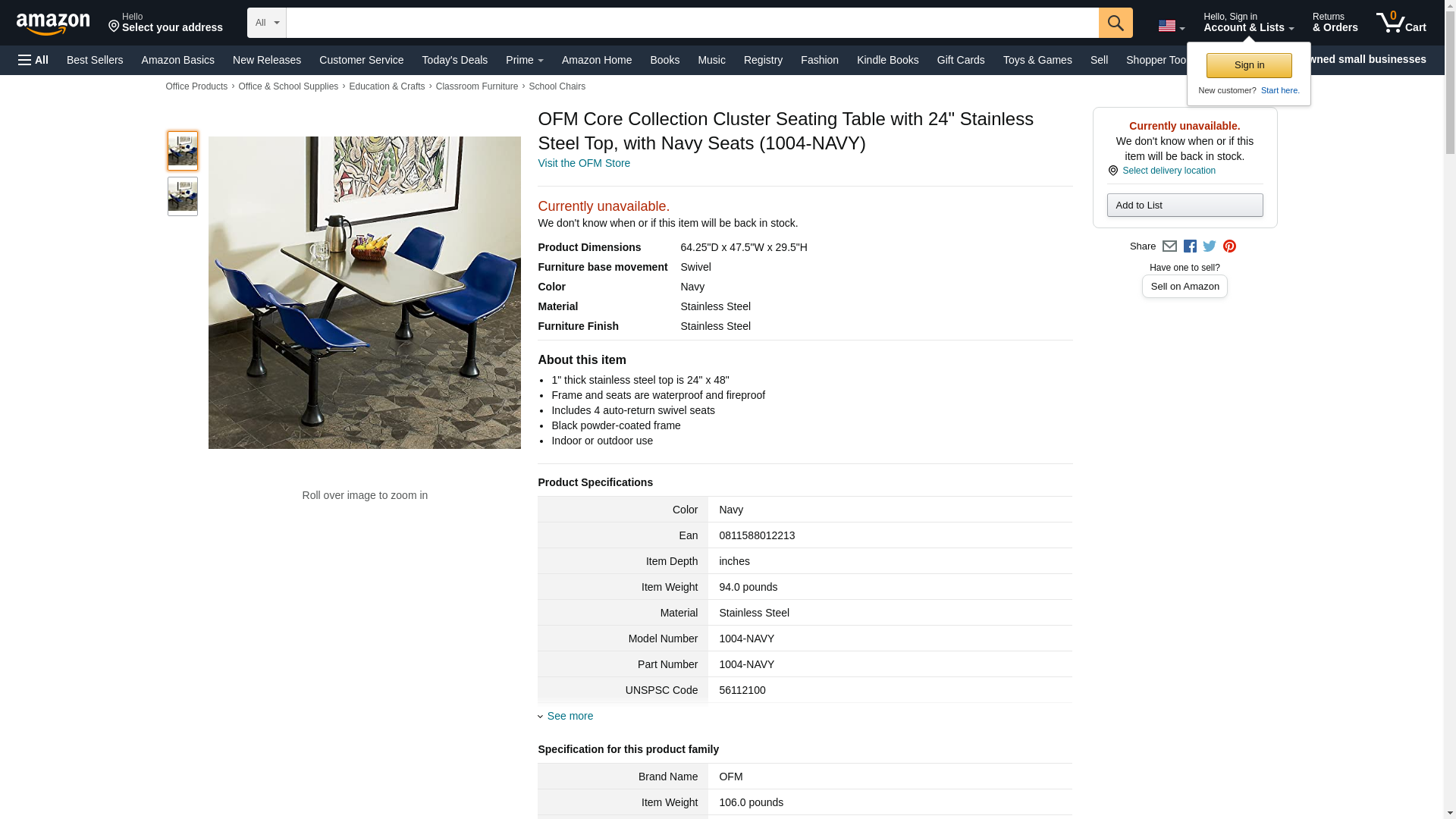 OFM Cluster Table with 4 Attached Swivel Chairs and Stainless Steel Top, Navy