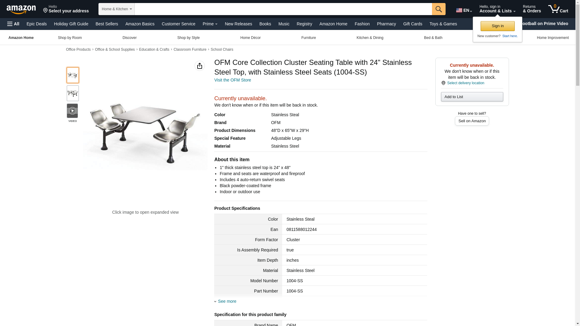 | Feature | 1" thick stainless steel top is 24" x 48" |