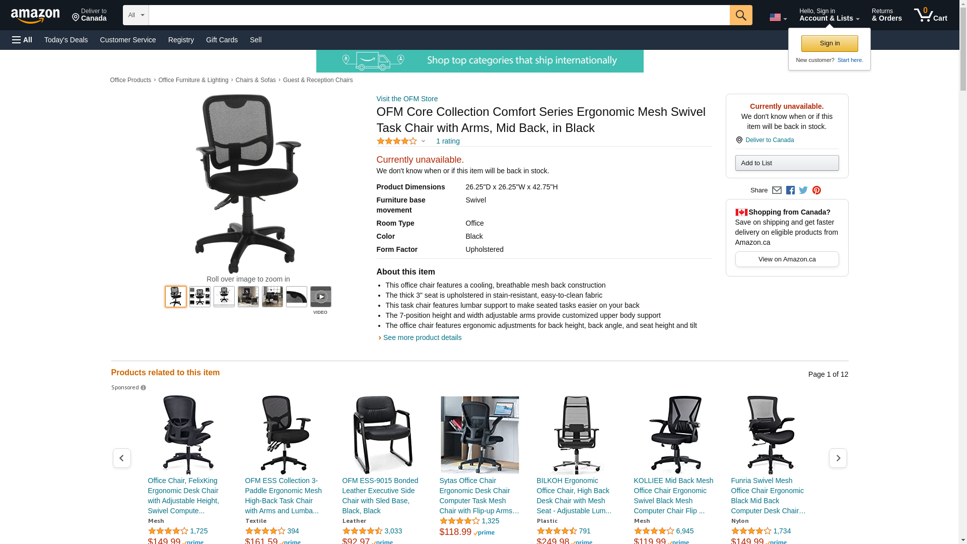 OFM Core Collection Comfort Series Ergonomic Mesh Swivel Task Chair with Arms, Mid Back, in Black