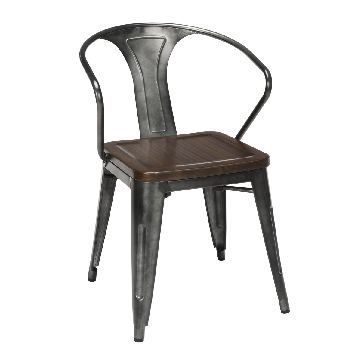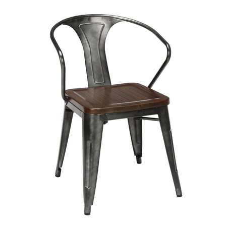OFM 161 Collection Industrial Modern 4 Pack Fully Assembled 18" Mid Back Dining Chairs w/ Arms, Solid Ash Wood Oversized Seats, Galvanized Steel, 4 Pack, in Gunmetal/Walnut (161-18A-GM-WNT-4)