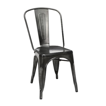 OFM 161 Collection Industrial Modern 4 Pack Fully Assembled 18" High Back Metal Dining Chairs, Galvanized Steel Indoor/Outdoor Chairs, in Gunmetal