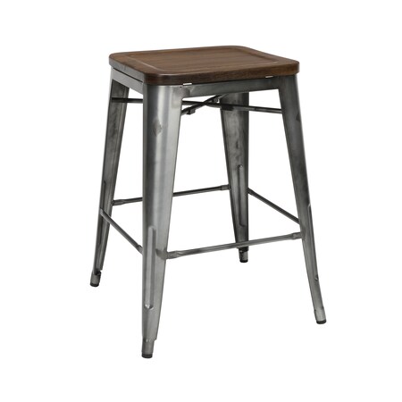 OFM 161 Collection Industrial Modern 4 Pack Fully Assembled 26" Backless Metal Stools w/ Solid Ash Wood Oversized Seats, Galvanized Steel Bar Stools, in Gunmetal/Walnut