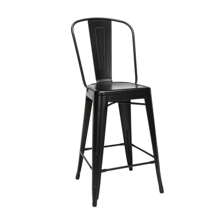 OFM 161 Collection Industrial Modern 26" High Back Metal Stools, Galvanized Steel Indoor/Outdoor Bar Stools, 4 Pack, in Black (161-26-BK-4)