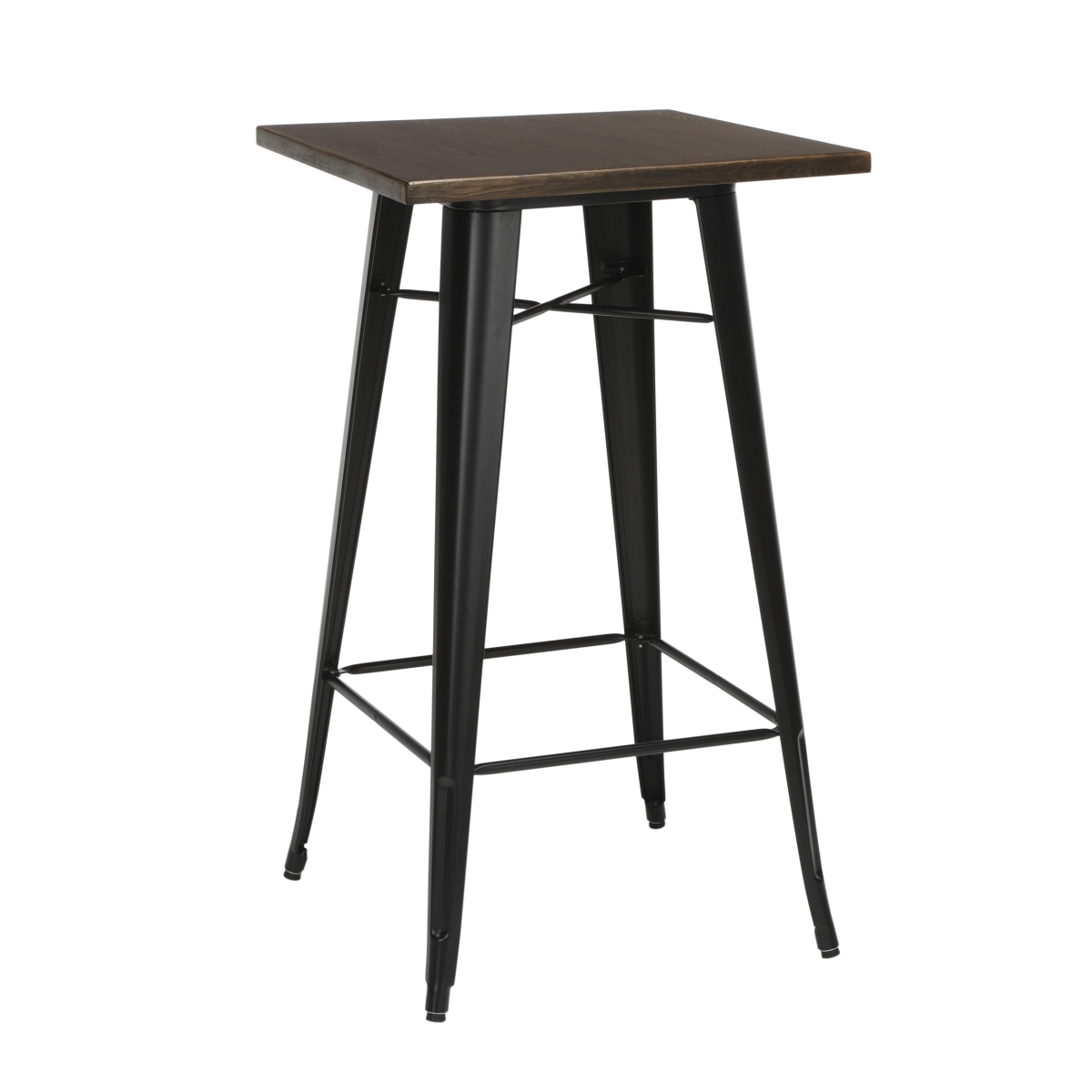 OFM 161 Collection Industrial Modern 24" Square Bar Table with Footring, Wooden Tabletop with Galvanized Steel Frame, in Black/Walnut (161-BT24-BLK-WNT)