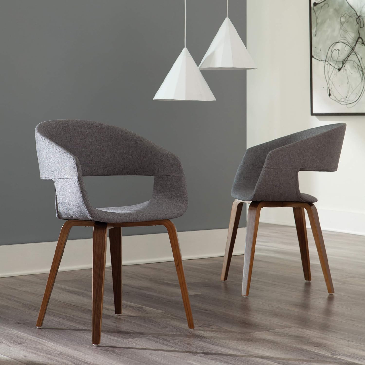 OFM 161 Collection Mid Century Modern Fabric Accent Chair, Dining Chair, 2 Pack, in Gray