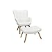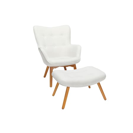 OFM 161 Collection Mid Century Modern Tufted Fabric Lounge Chair with Ottoman, Solid Honey Beechwood Legs, in Beige (161-FLC1-BGE)