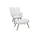 OFM 161 Collection Mid Century Modern Tufted Fabric Lounge Chair with Ottoman, Solid Honey Beechwood Legs, in Light Gray (161-FLC1-LGRY)