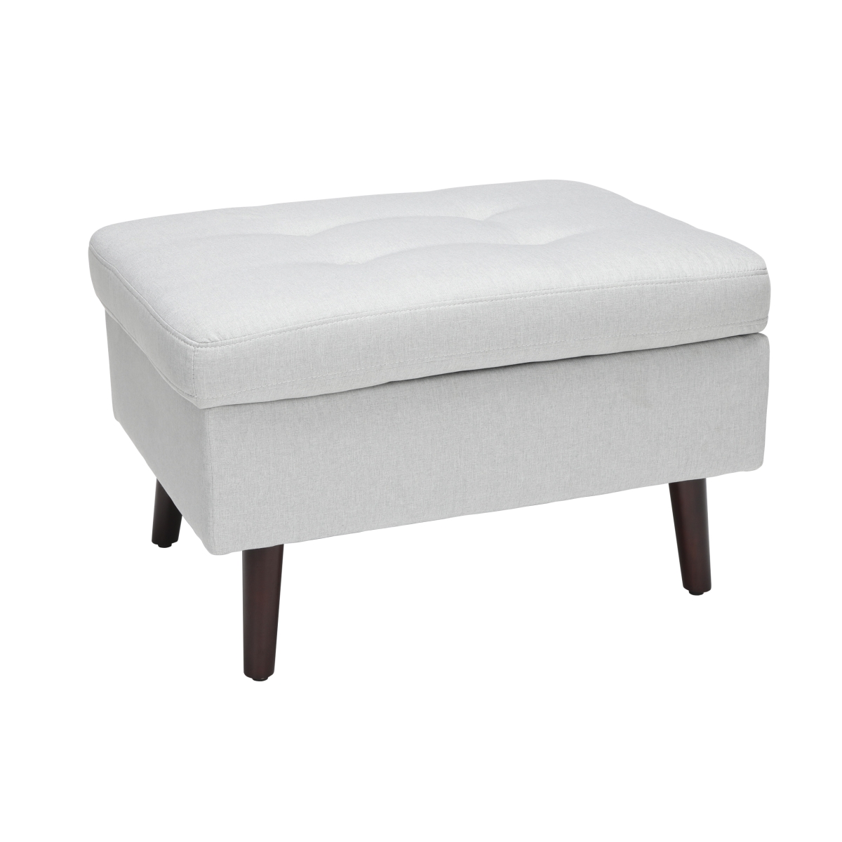 OFM 161 Collection Mid Century Modern Tufted Fabric Storage Ottoman, Walnut Legs, in Light Gray (161-OTT2-LGRY)