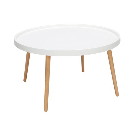 OFM 161 Collection Mid Century Modern Plastic Coffee Table, Solid Wood Legs, in White