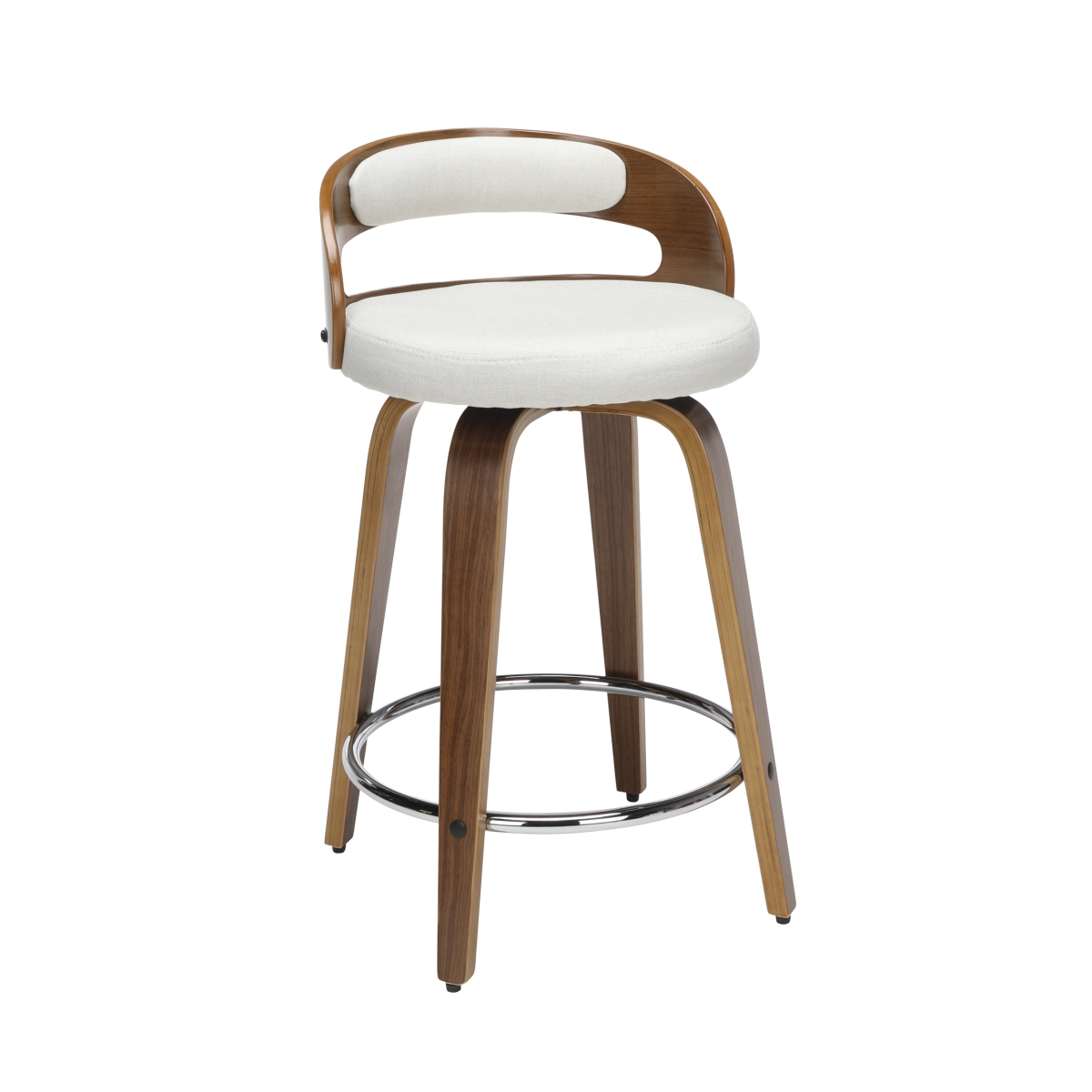 OFM 161 Collection Mid Century Modern 24" Low Back Bentwood Frame Swivel Seat Stool with Fabric Back and Seat Cushion, in Walnut/Beige