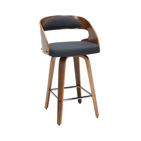 OFM 161 Collection Mid Century Modern 26" Bentwood Frame Swivel Seat Stool with Fabric Back and Seat Cushion, in Walnut/Navy