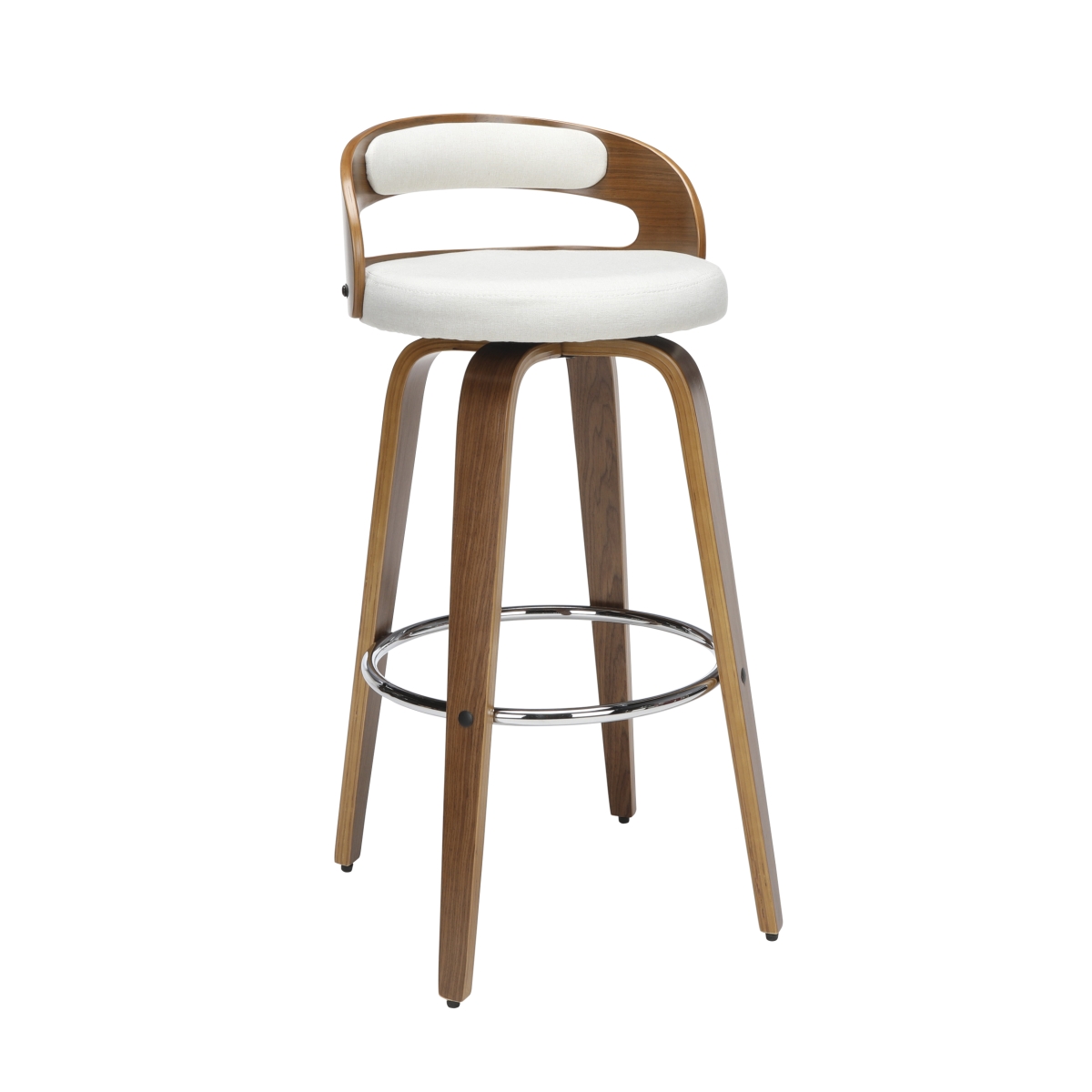 OFM 161 Collection Mid Century Modern 30" Low Back Bentwood Frame Swivel Seat Stool with Fabric Back and Seat Cushion, in Walnut/Beige