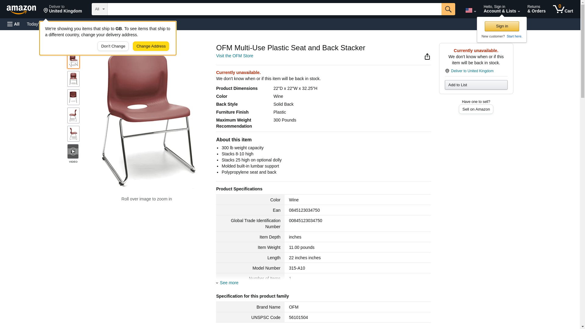 OFM 315-A10 Multi-Use Plastic Seat and Back Stacker