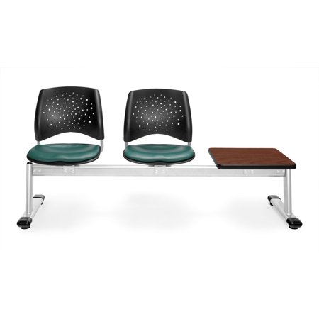 - Bring guests together with OFM attractive and stylish stars 3-unit beam seating with 2 seats and 1 table. 323T-VAM-602-CH-OFM 323t-vam features three seats with a triple-curve seat design and extra-curved back with lumbar support for the user's long-term comfort. Durable beam base is protected by a silver powder-coated paint finish that will stand the test of time. The long-lasting, stain-resistant and anti-microbial/anti-bacterial vinyl seat cushions are replaceable when it's time to update your decor. You can also choose upholstery from the elements in-stock textile upgrade program. High-pressure laminate table is available in your choice of 4 finishes, and can be placed in any position on the beam. Total beam weight capacity is 750 lbs.