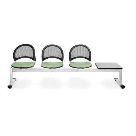 OFM Moon Series Model 334T 4-Unit Beam Seating with 3 Fabric Seats & 1 Table, Sage Green with Gray