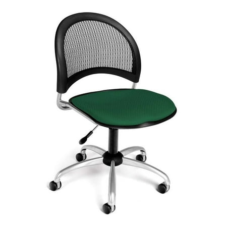 The OFM Moon Series fabric task chair is an ideal choice for the office, school or healthcare facility. The stylish mesh back features a triple curve, extra thick design that provides built-in lumbar support. Simple and intuitive controls for seat height adjustment plus a 360 degree swivel allow for customized comfort. The long-lasting, stain-resistant fabric seat cushion is replaceable when it's time to update decor or change colors. A durable 25" steel 5 star base supports a steel frame with a silver powder-coated paint finish that will stand up to heavy use. This model meets or exceeds industry standards for safety and durability, and is backed by OFM's Limited Lifetime Warranty.Finish: Forest and Green; Material: Fabric, Plastic, Metal; Gas-lift seat height adjustment and 360-degree swivel; Ergonomic comfort: triple-curve design and built-in lumbar support; Sturdy powder-coated steel frame and 25" 5 star wheeled base; Replaceable seat cushion is upholstered in stain-resistant, easy-to-clean fabric. Specifications:Overall Product Dimensions: 33.25 - 36" H x 25" W x 25" D; Overall Product Weight: 29 lbs; Weight Capacity: 250 lbs; Overall Product Weight: 29 lbs.