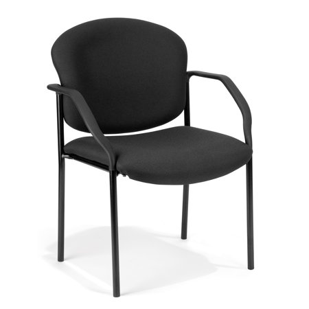 404-805 Material/Color: Fabric/Black Features: -Sturdy round steel tube frame.-Waterfall seat.-Teflon coated, stain resistant fabric.-Mushroom back.-Contoured black plastic arms.-Contemporary design.-Fabric rated at 750,000 double-rubs.-Adjustable leg glides.-Stacks 4 high.-Meets or exceeds ANSI/BIFMA safety standards.-Available in navy, teal, gray, wine and black. Specifications: -250 lbs weight capacity. Assembly Instructions: -Minimal assembly required. Dimensions: -Seat size: 21.5'' W x 18.5'' D.-Back size: 21.5'' W x 16.5'' H.-Seat height: 18''.-Overall height: 35''.-Overall width: 24''.-Overall depth: 19.5''.
