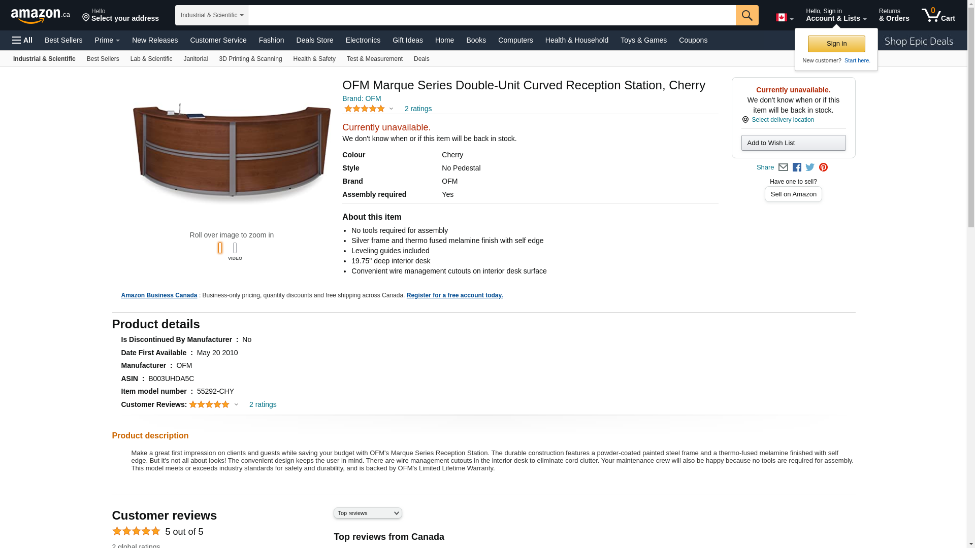 OFM Core Collection Marque Series Double Unit Curved Reception Station, in Cherry (55292-CHY)