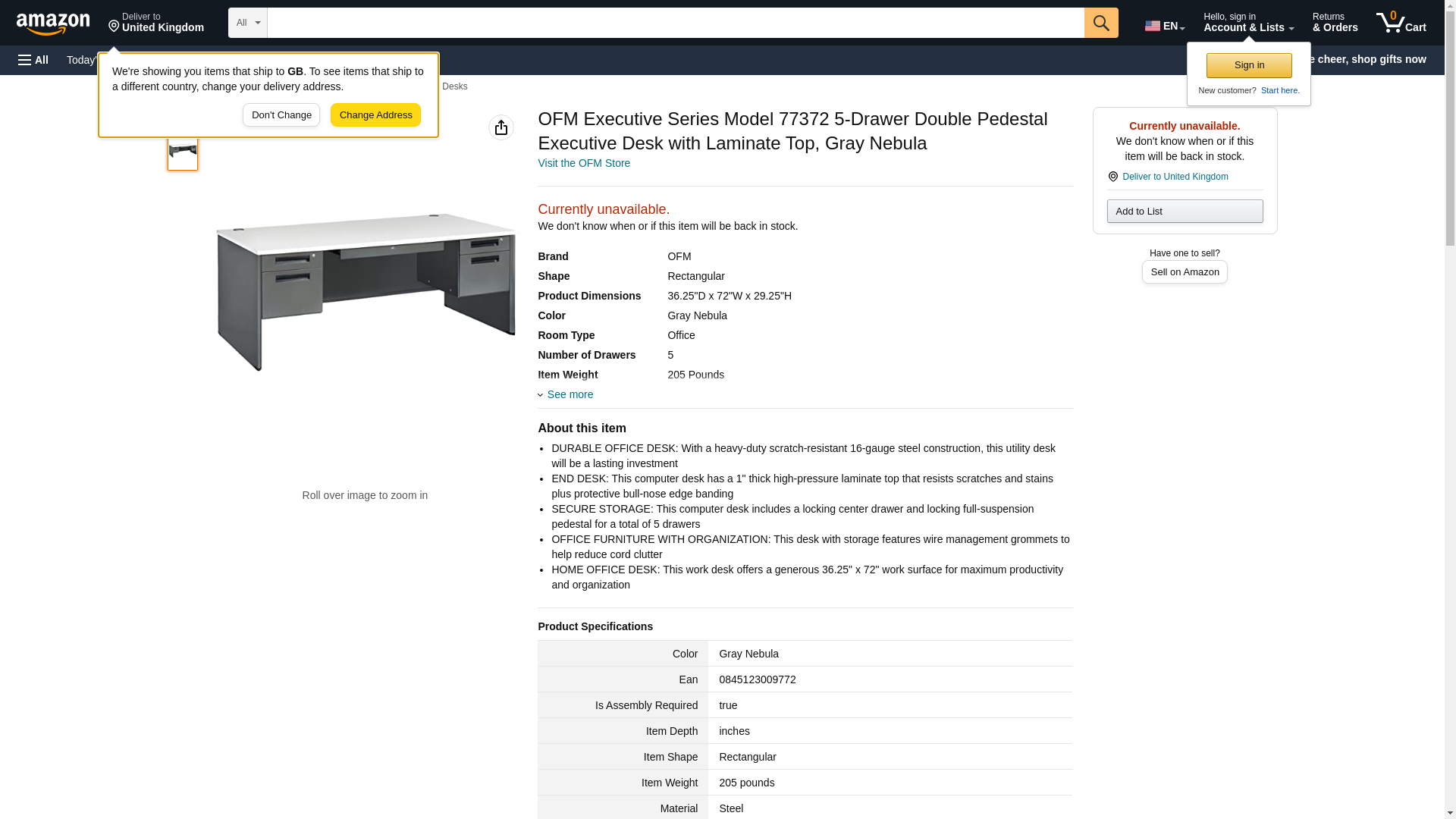 | Feature | Finish: Thermofused melamine finish, metal gray base |