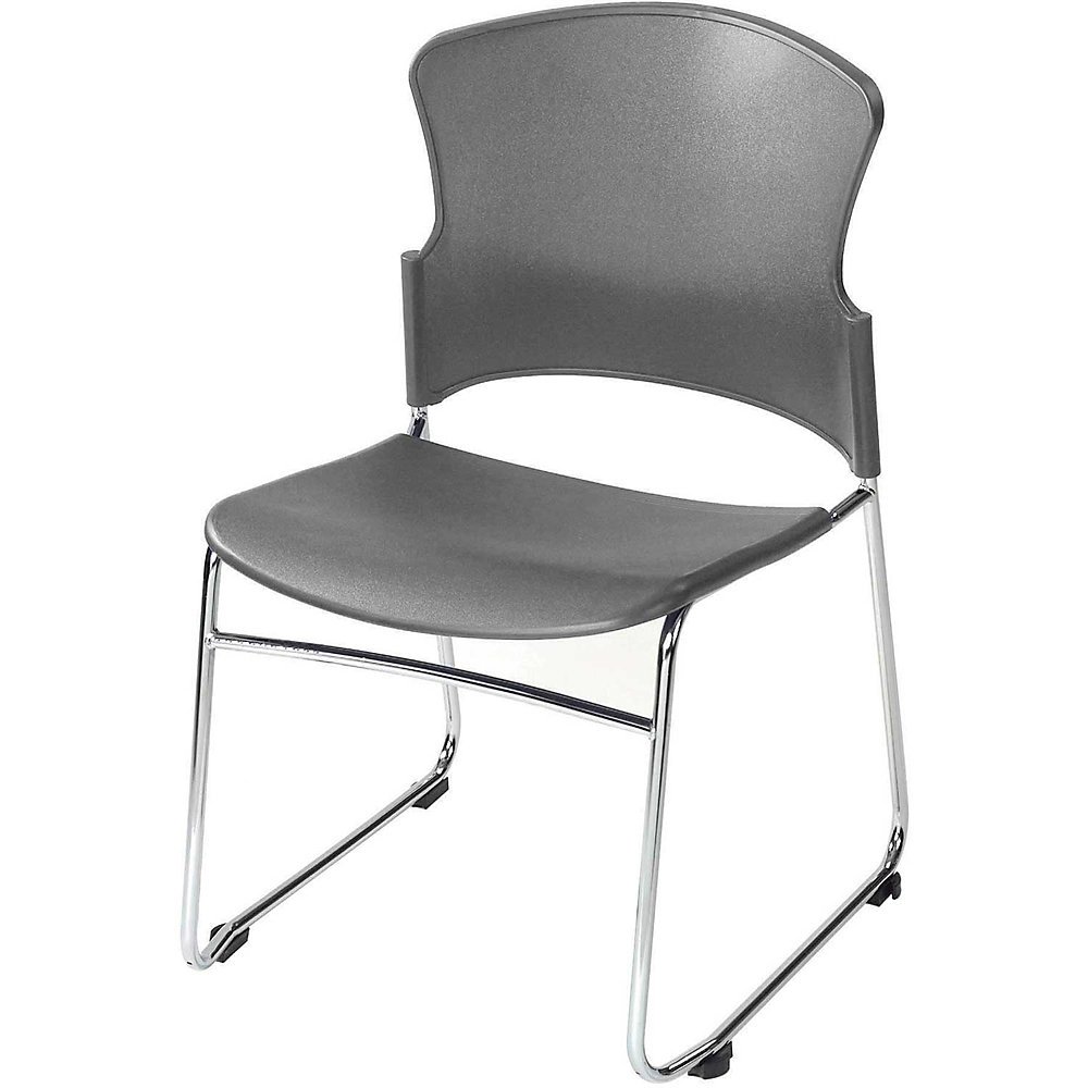 Durable plastic shell is supported by a chrome plated steel frame. Sled base. 17"Wx14-1/4"H back. Chairs stack 25 high. Order in quantities of 4, priced each.