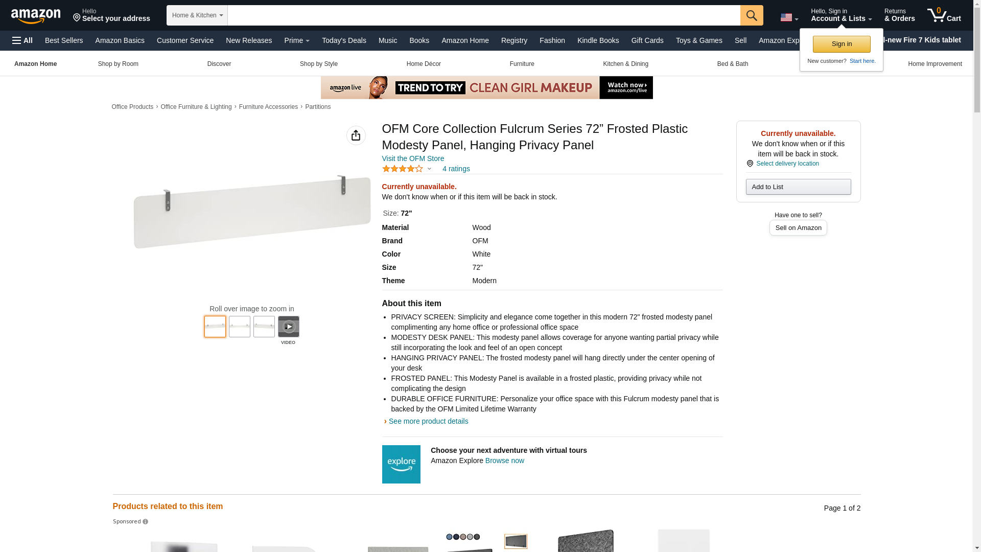 OFM CL-MP60-66 Fulcrum Series 60” Frosted Plastic Modesty, Hanging Privacy Panel, White