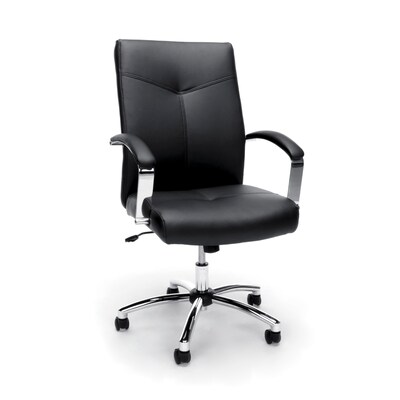 OFM Leather Executive Conference Office Chair With Lumbar Support, Height Adjustable, Recline/Tilt Controls, 250lb Max Weight With Wheels for Computer/Desk, Black