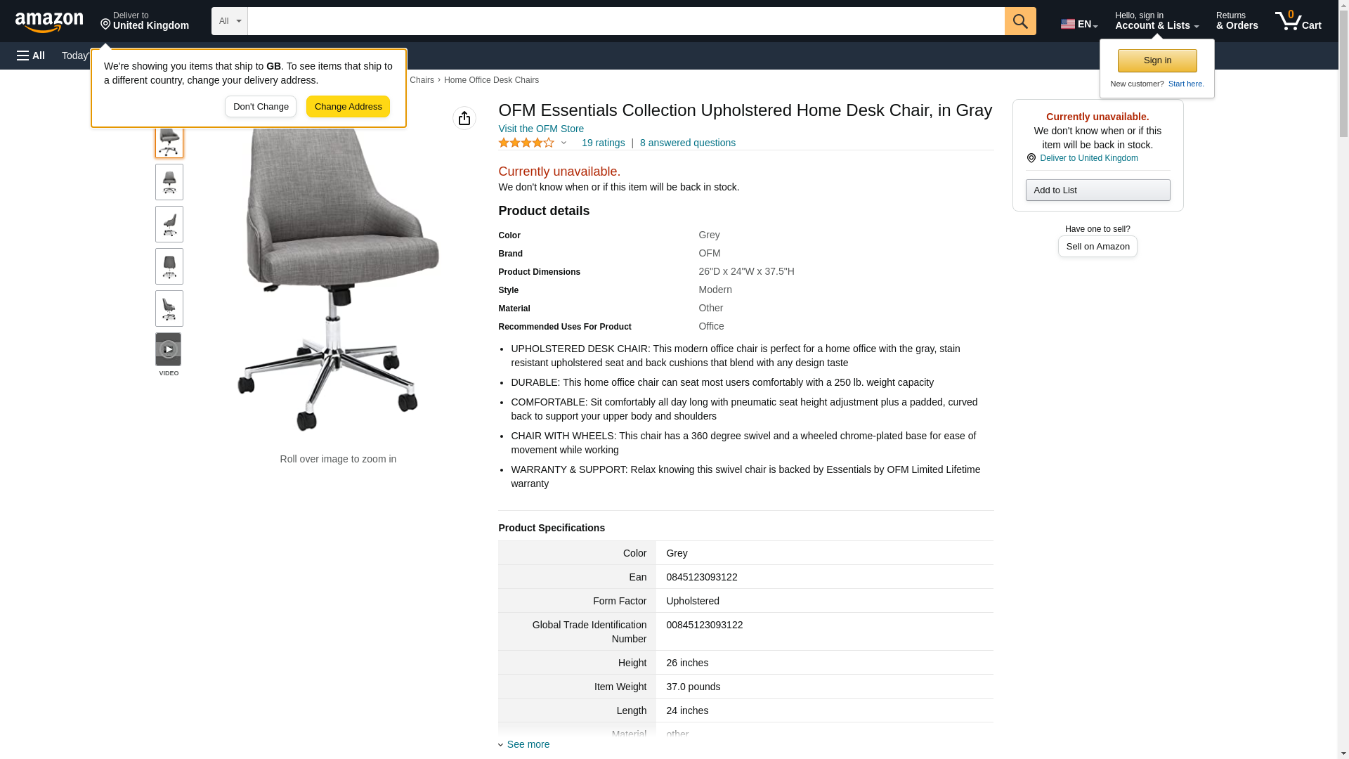 | Feature | UPHOLSTERED DESK CHAIR: This modern office chair is perfect for a home office with the gray, stain resistant upholstered seat and back cushions that blend with any design taste |