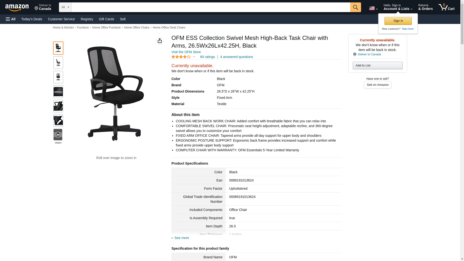 OFM ESS Collection Swivel Mesh High-Back Task Chair with Arms, 26.5Wx26Lx42.25H, Black