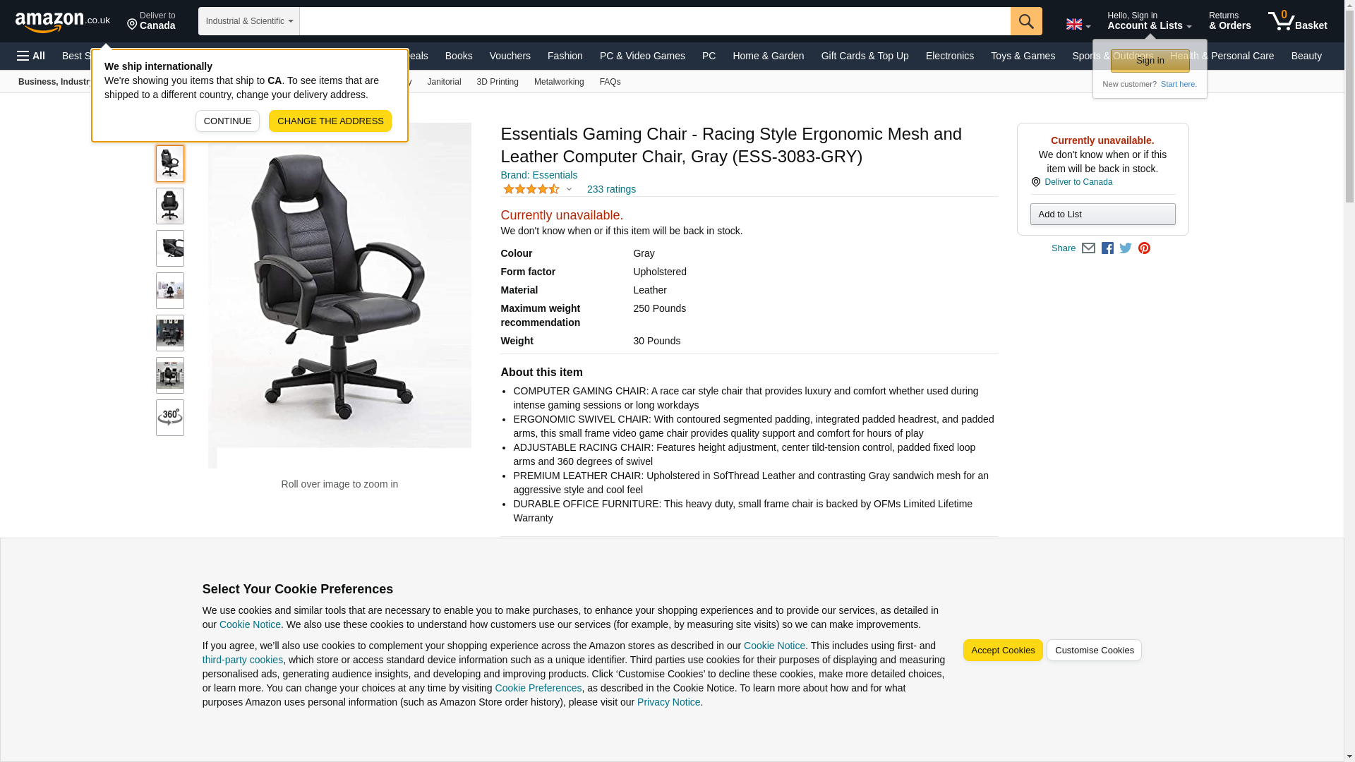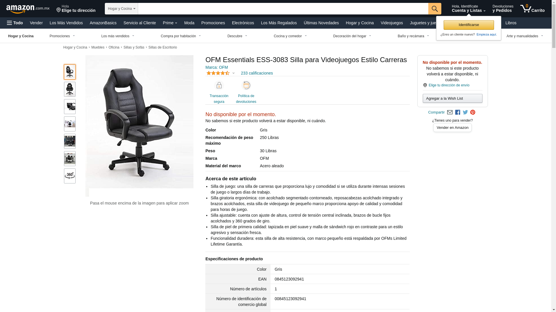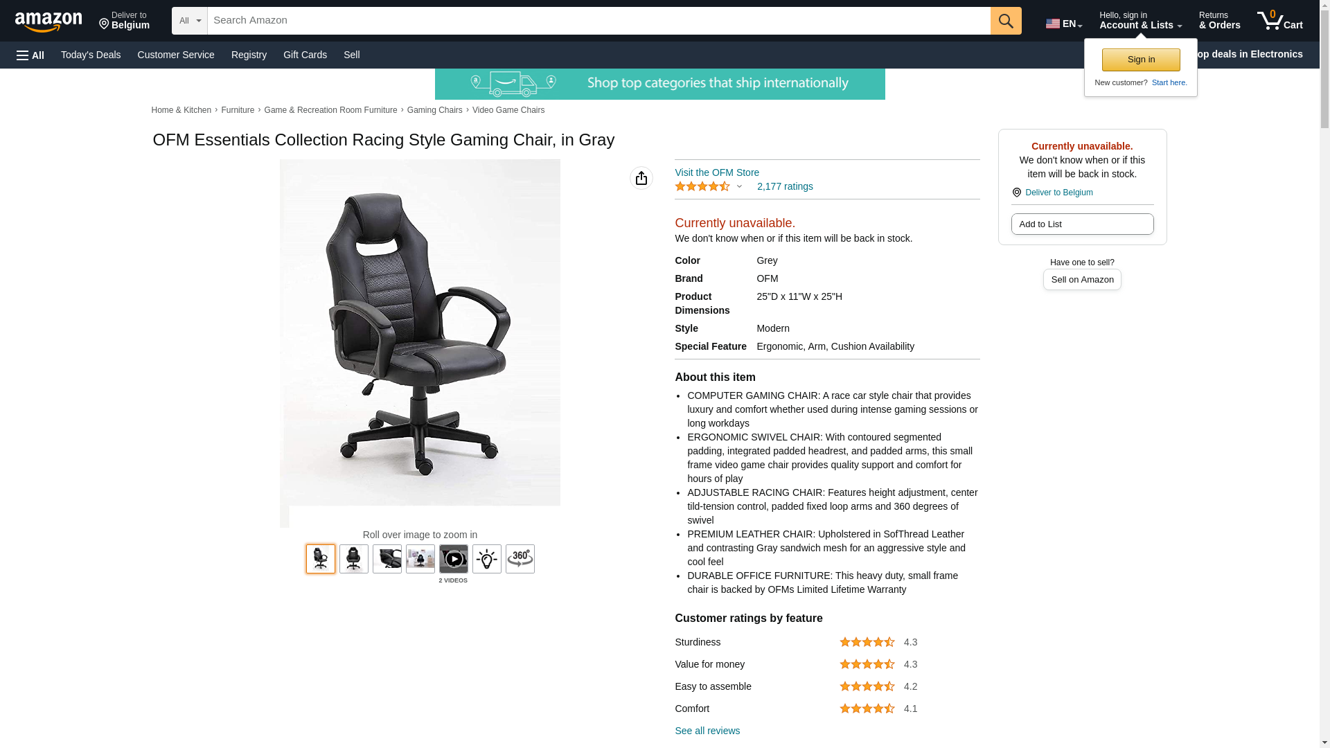 OFM Essentials Collection Racing Style Gaming Chair, in Gray