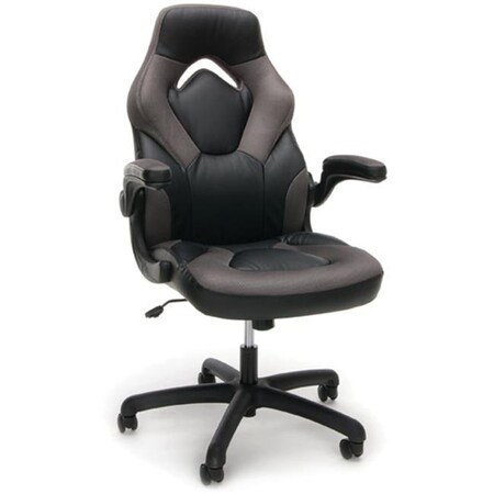 OFM Essentials Racecar-Style Leather Gaming Chair - Black and Gray
