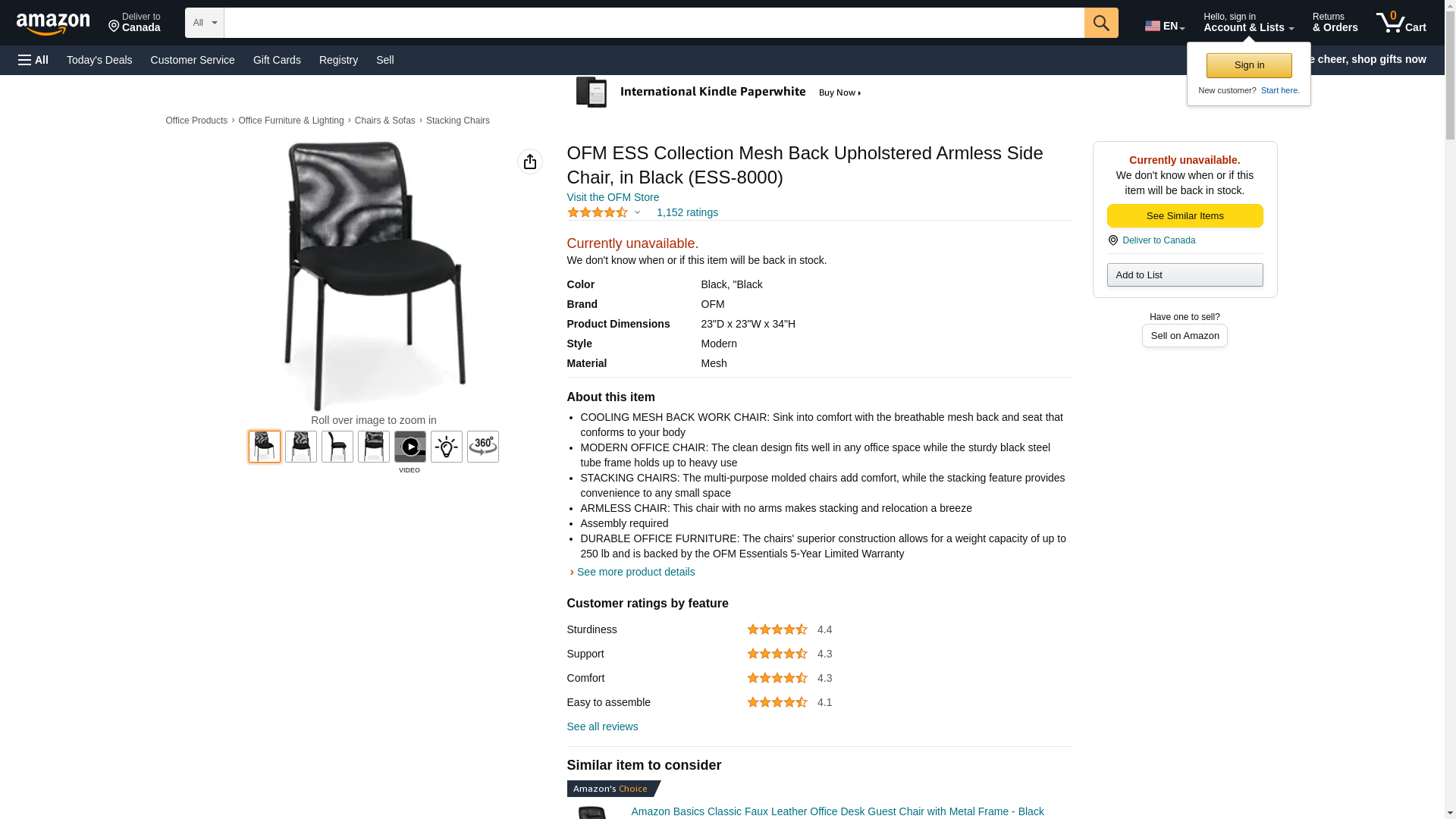 OFM ESS Collection Mesh Back Upholstered Armless Side Chair, in Black (ESS-8000)