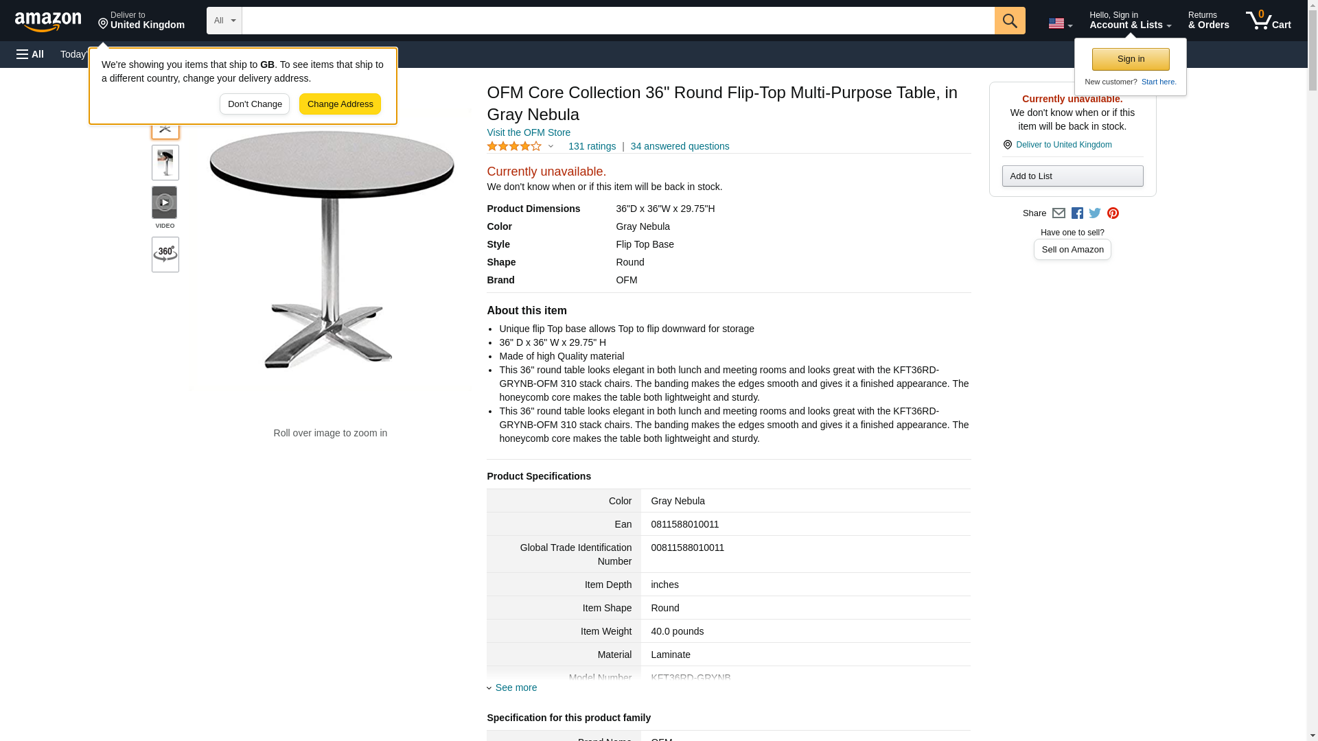 OFM Core Collection 36" Round Flip-Top Multi-Purpose Table, in Gray Nebula