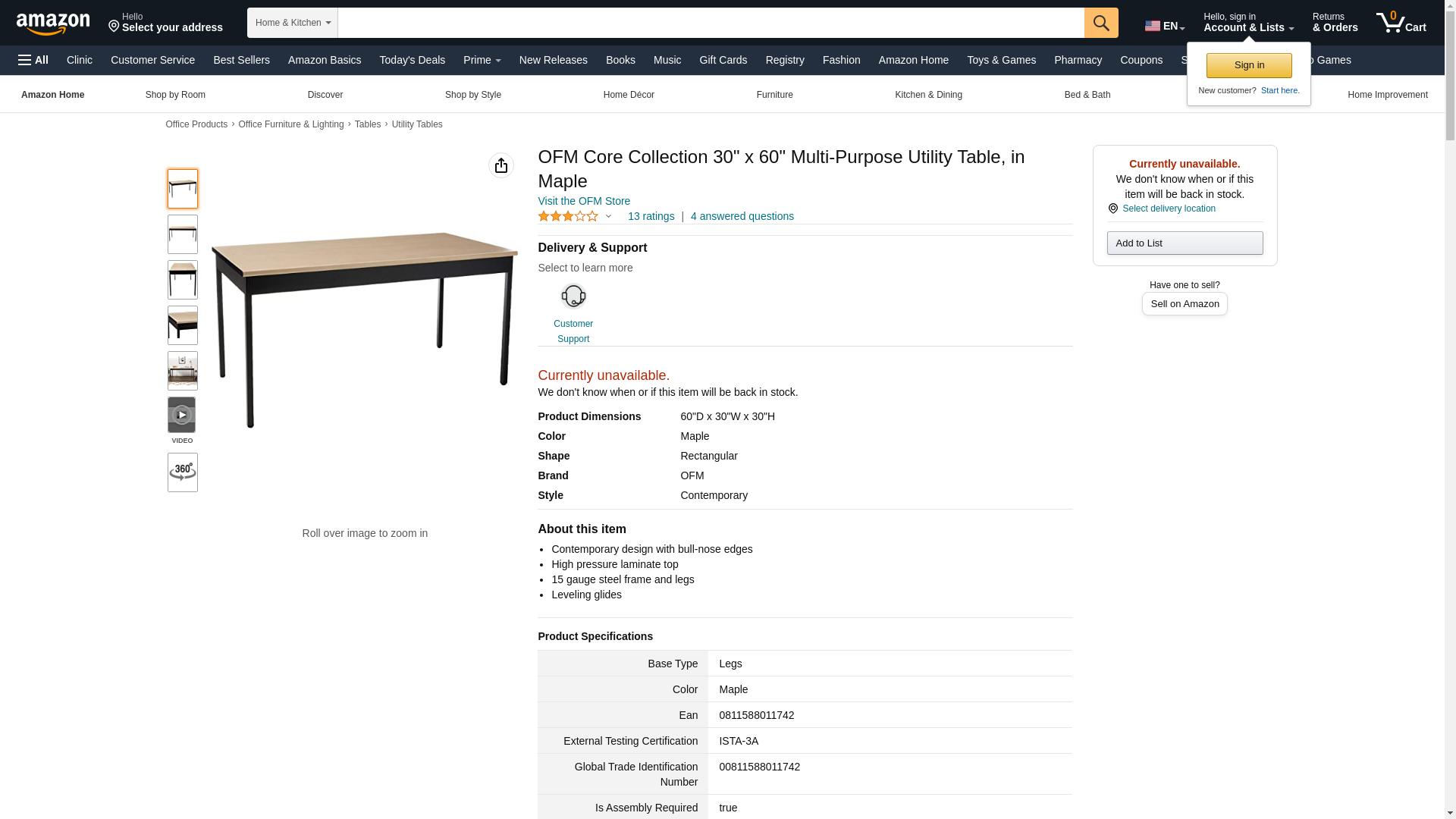 OFM Core Collection 30" x 60" Multi-Purpose Utility Table, in Maple